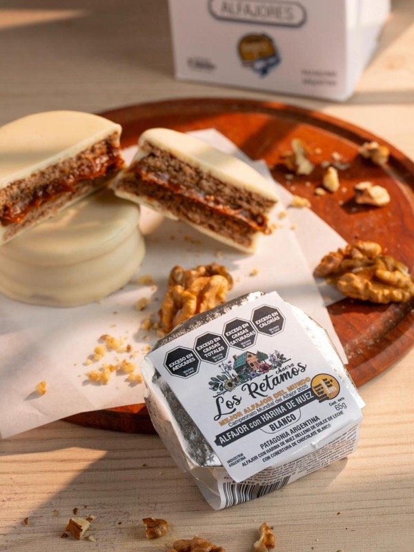 Esta caja contiene 6 unidades de Alfajor con harina de nuez, dulce de leche y cobertura de chocolate blanco. Mejor Alfajor del Mundo 2025, Campeonato Mundial del Alfajor.